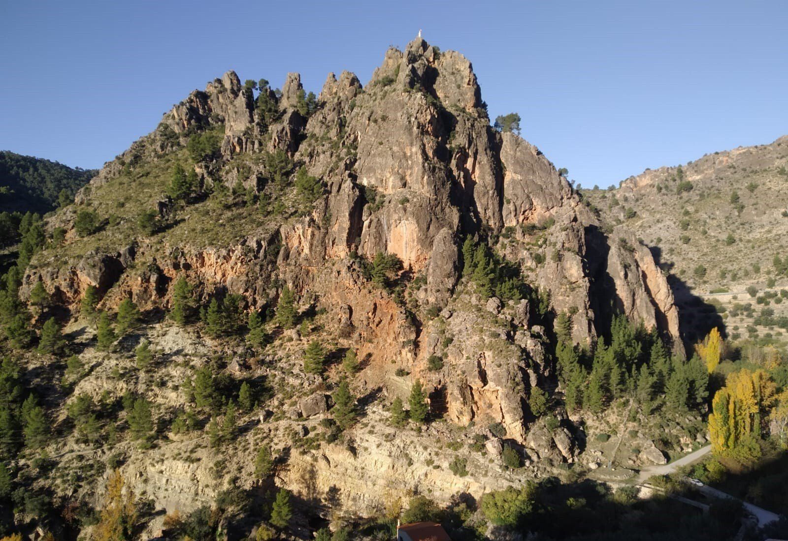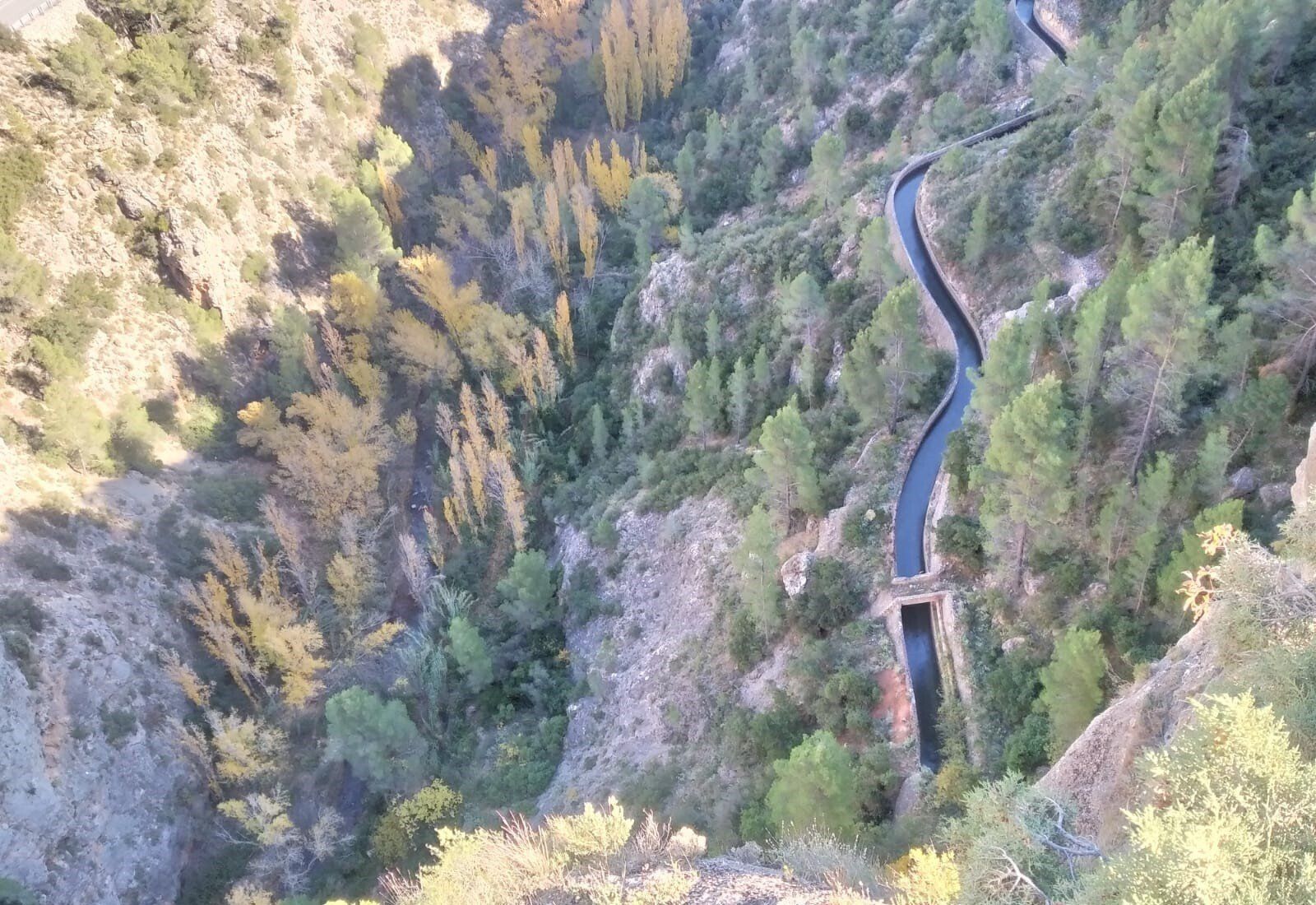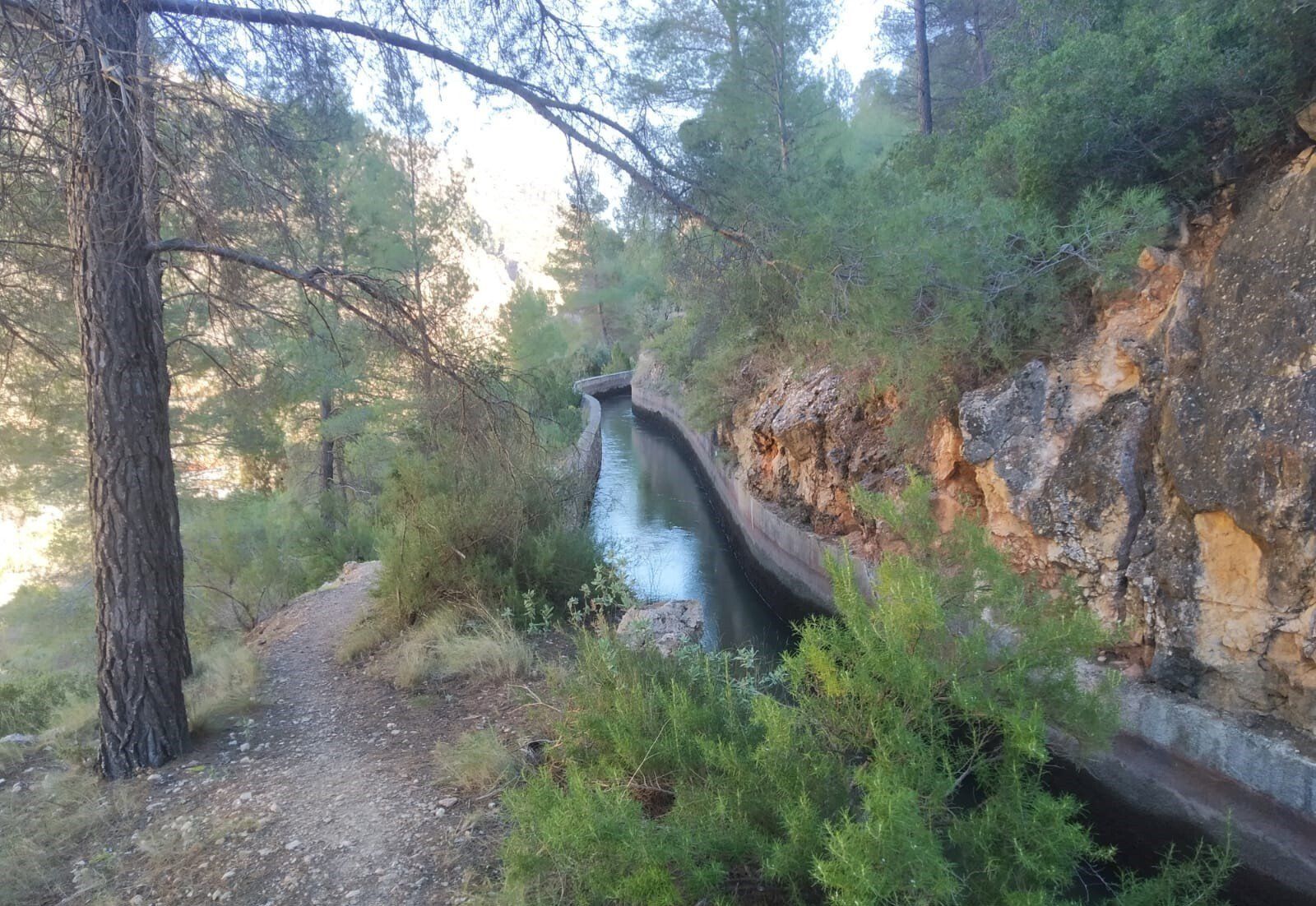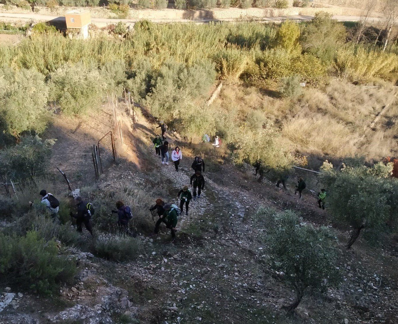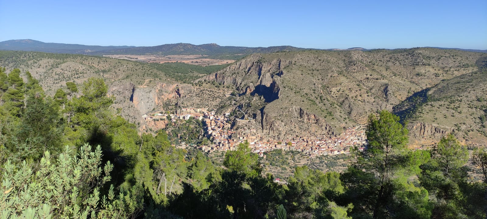 Desde la Plaza Mayor de Ayna, nos esperaban unos 4 kms de continua subida por un sendero de piedras, senda de la Umbría, camino de la Fontezuela, ya con algo de camino descendente hasta el Mirador de los Infiernos, donde asomarse hasta abajo por donde transcurría el curso del río Mundo, te producía un vértigo enorme. En este recorrido disfrutamos de unas vistas espectaculares, del pueblo, del paisaje, de la flora, todo por un estrecho cañón por donde transcurre el río Mundo, conocido también como “La Suiza Manchega”, con espectaculares paredes, donde había numerosos escaladores, y unas vistas y rincones maravillosos.