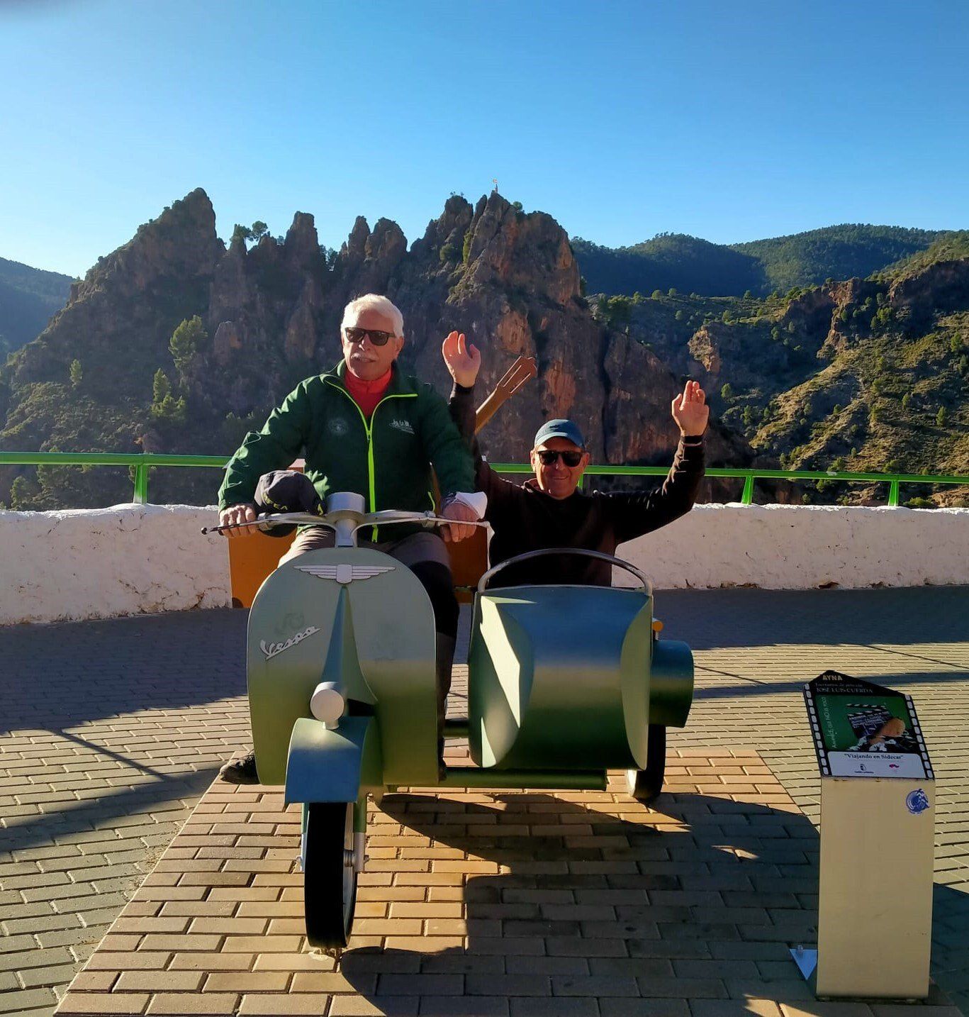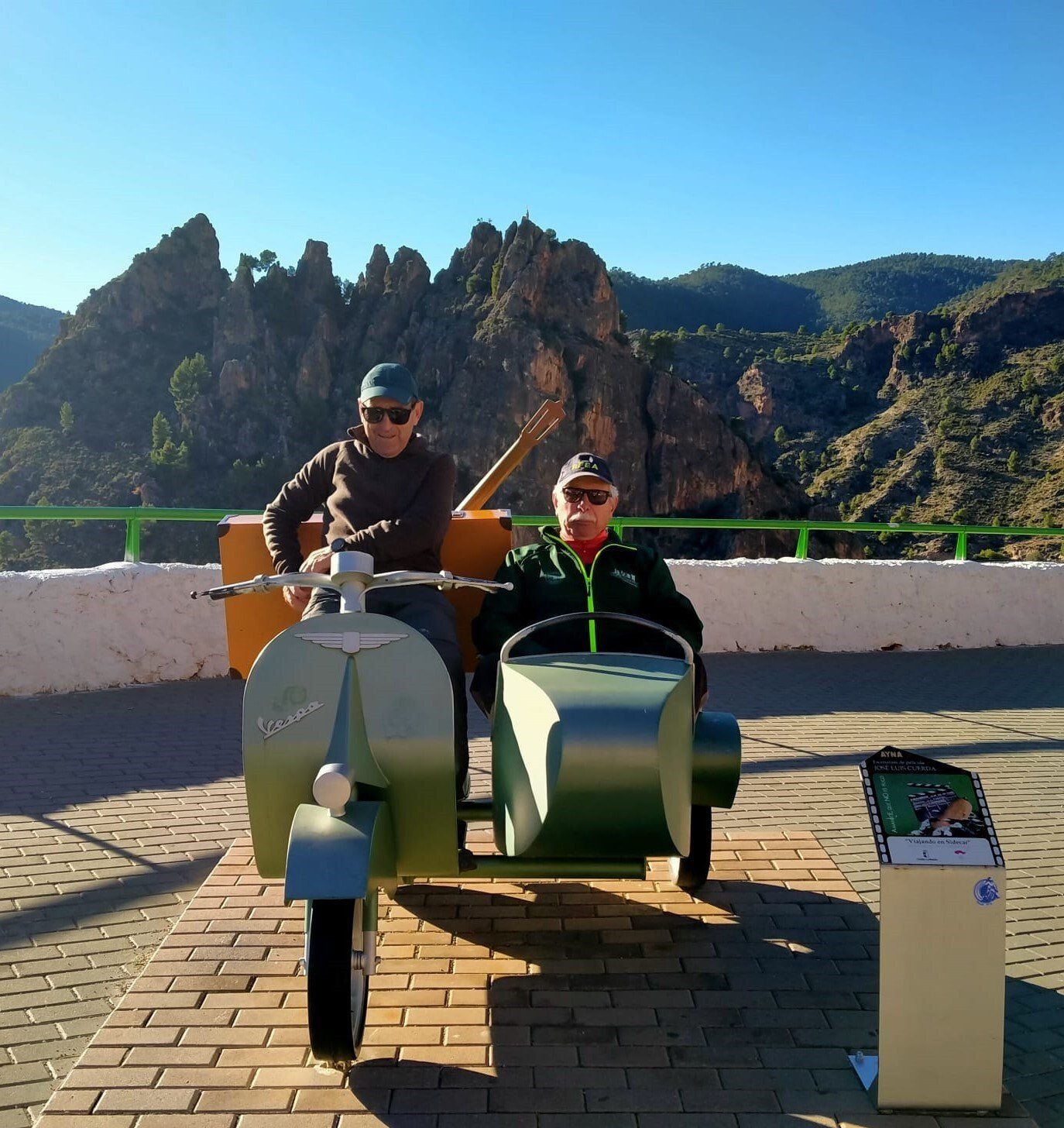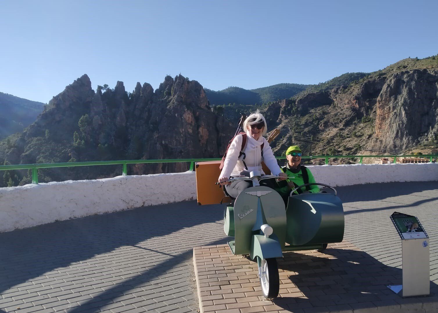 Una vez terminado nos dirigimos hacia el autobús que estaba aparcado en un mirador en la carretera de entrada, en el recorrido compramos unos dulces típicos, y atravesamos calles estrechas con unas buenas cuestas. Una vez llegamos nos hicimos las últimas fotos de grupo y sobre todo en la vespa con sidecar que estaba en el mirador, que salía en una de las escenas más conocidas de la película.
